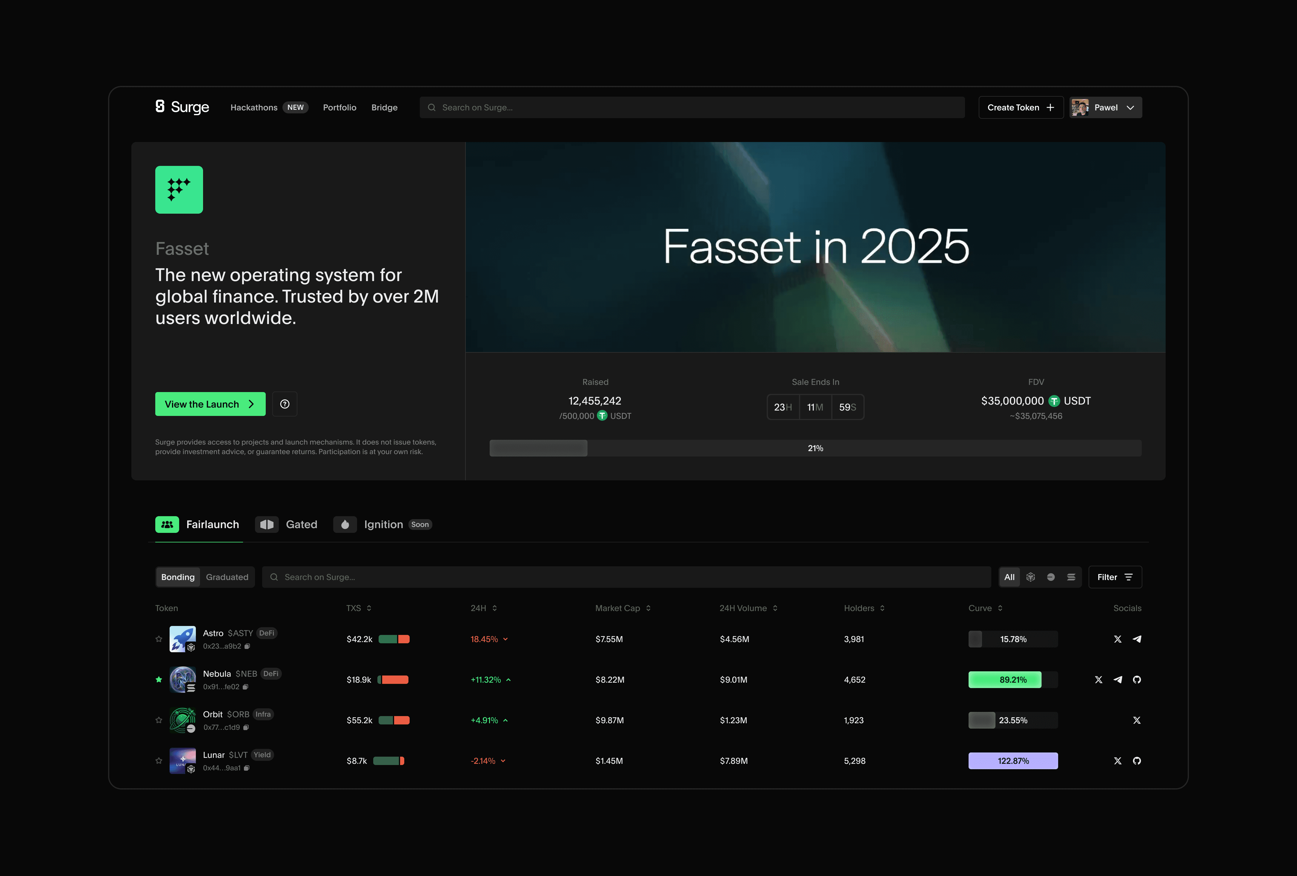 Surge is building next-gen capital markets for AI startups, letting founders raise capital on live metrics instead of slow venture cycles. We shaped their product and design direction from early concepts through full platform design.